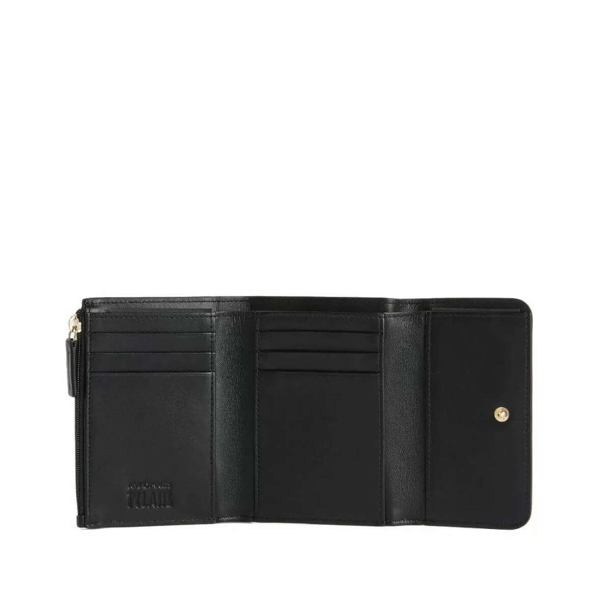 Portafoglio da donna di ALVIERO MARTINI 1^CLASSE realizzata in pelle nera. La pregiata pelle granata si apre per rivelare un interno organizzato in numerose tasche, perfetto per accogliere tutto il necessario per il quotidiano. La patta chiusa con bottone a pressione è completata dal logo 1ᴬ Classe in oro chiaro, regalando l’impronta unica del brand a questo modello sofisticato e funzionale.