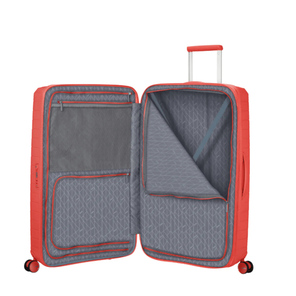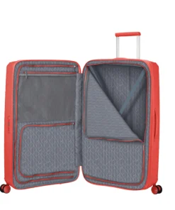 Trolley grande rigido, della linea FASTFORWARD di AMERICAN TOURISTER dal design unico e avanzate tecnologie. Realizzato in Polypropylene. Due divisori in tessuto, cinghie ferma abiti, una tasca in rete, una tasca per camicia e un porta AirTag. Chiusura con combinazione e sistema TSA. Quattro ruote bidirezionali. Possibilità di poterla personalizzare. Carrello bitubo. Valigia espandibile.