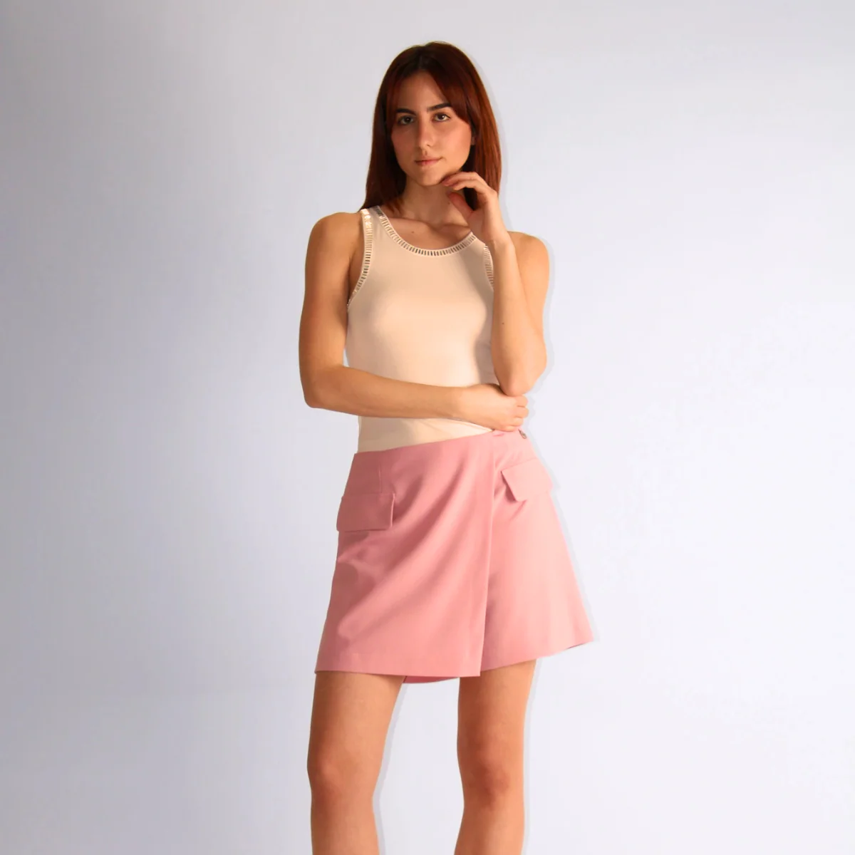 Pantagonna di BERNA realizzato in tessuto leggero ma strutturato. Presenta due taschine frontali finte e una cerniera laterale. Vestibilità regolare, abbinabile al blazer. Le taglie sono da considerare all’italiana: