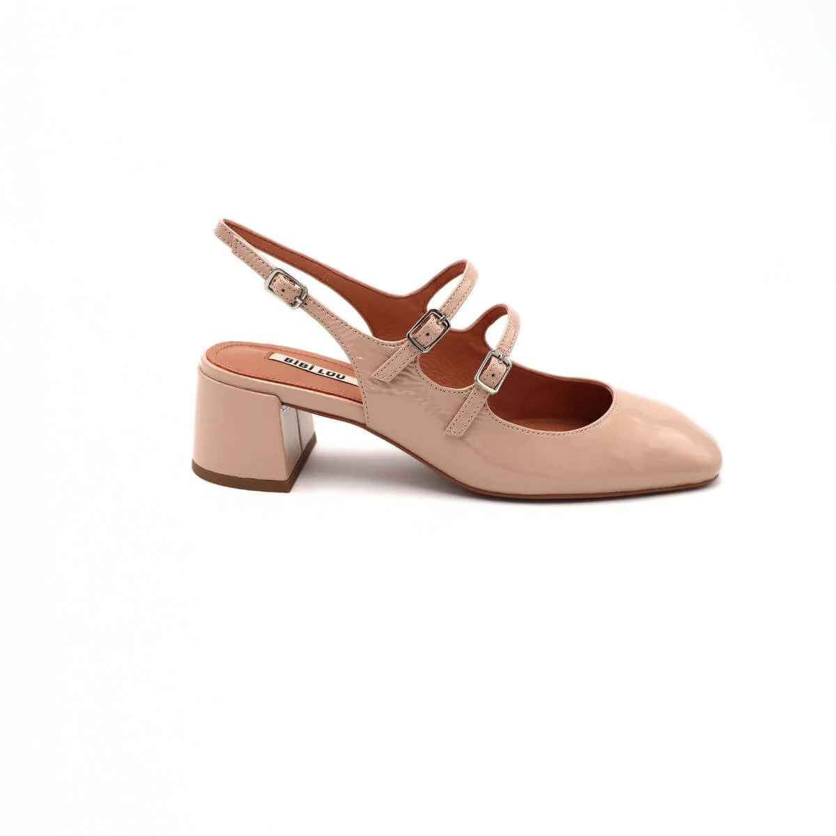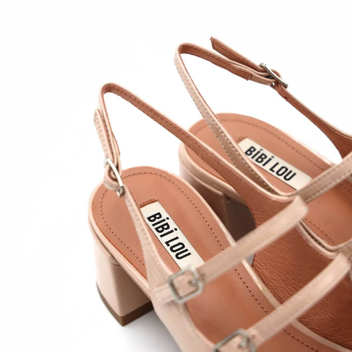 Chanel da donna di BIBI LOU, realizzato in pelle verniciata nude con due cinturini regolabili. Interno e sottopiede, soffice, in pelle. Chiusura con cinturino regolabile. Suola in gomma.