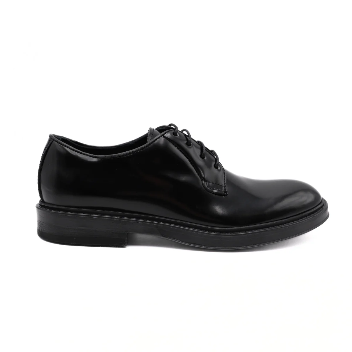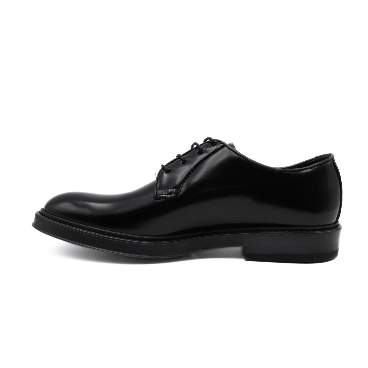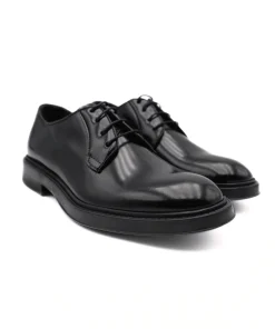 Stringata da uomo modello derby di F.LLI RENELLA, realizzata in pelle spazzolata nera. Interno e sottopiede, non estraibile, foderati in pelle. Chiusura con laccio. Suola in gomma antiscivolo.