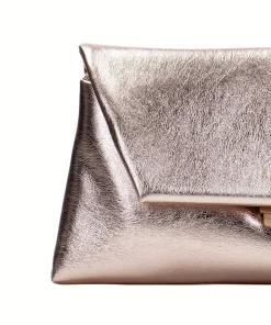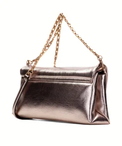 Borsa da donna di HISPANITAS, realizzata in similpelle laminata rose gold. Interno suddiviso in due comparti foderato in tessuto con tasche accessorie. Tracolla in catena e similpelle removibile. Chiusura con bottone ad incastro.