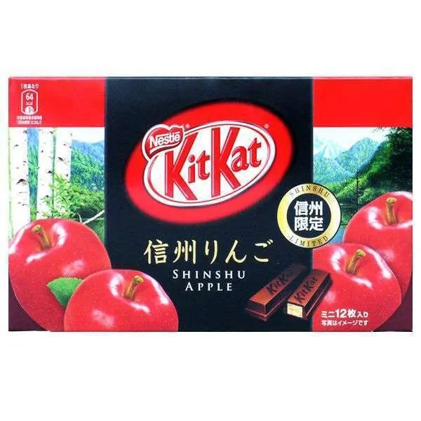 Dal Giappone con furore ecco Kit Kat Shinsyu apple, deliziosi dolcetti a base wafer, ricoperti di dolce cioccolato al latte e ripiene di crema di mele. La dolce morbidezza del cioccolato bianco si unisce al gusto fruttato del ripieno per un sapore unico. Prova Kit Kat Shinsyu apple!
