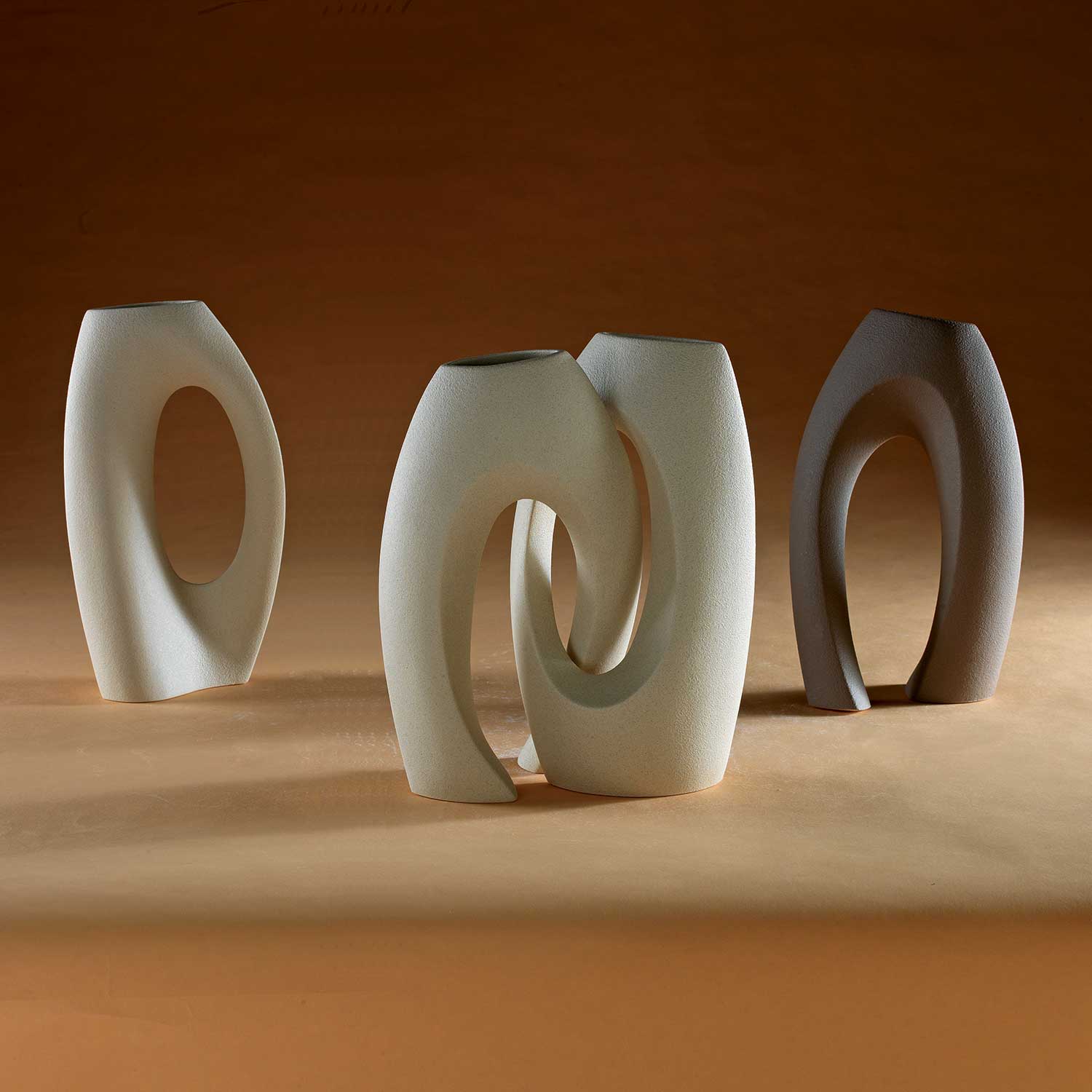 Due vasi, due volumi distinti. Uniti tra loro raccontano l’abbraccio di due corpi che si sorreggono e si aiutano.