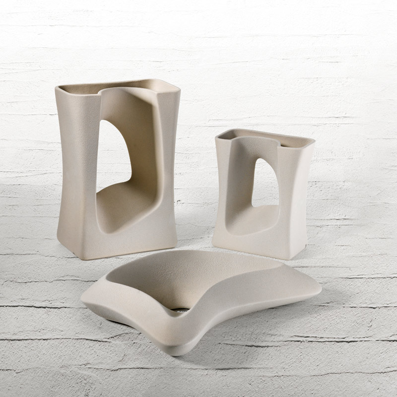 Dune e rocce scoscese a ricordo di viaggi e orizzonti lontani. Un centrotavola dal design organico e minimale, il foro al centro crea una visione misteriosa.