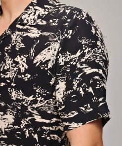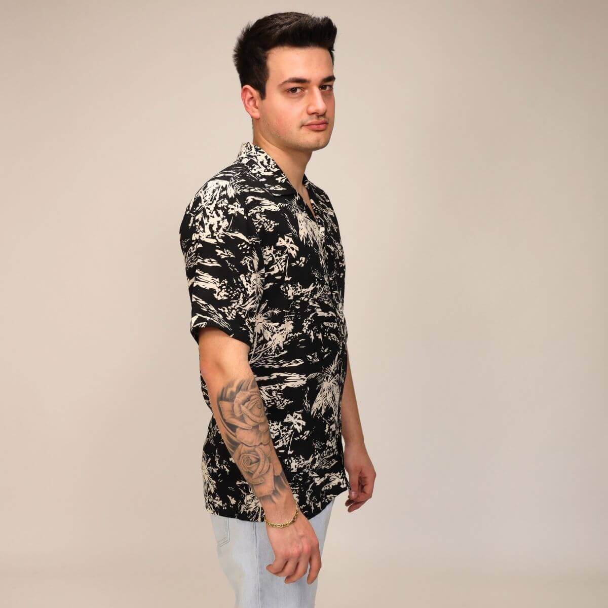 Camicia da uomo di MARKUP con manica corta e disegni bianchi e neri. Chiusura con bottoni. Portabile sia da sola che con una t-shirt sotto. Vestibilità regolare.