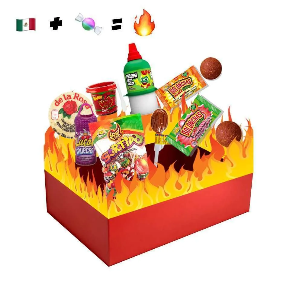All’interno della box troverai 24** tra caramelle, lecca-lecca e altri dolciumi provenienti direttamente dal Messico, tra cui potrete trovare: Pelon Pelo Rico; De la rosa Dulce de Cachuate; Pulparindo; Salsghetti; Lucas Muecas; Candy Mara Bolonchas; Candy Mara Vasito Chamo e altri!