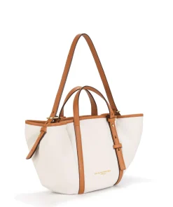 Borsa a mano da donna di NANNINI, modello LAURA, realizzata in pelle bottalata bianca e doppio manico in pelle cuoio e tracolla regolabile e removibile. Interno unico comparto con tasche accessorie. Chiusura con zip