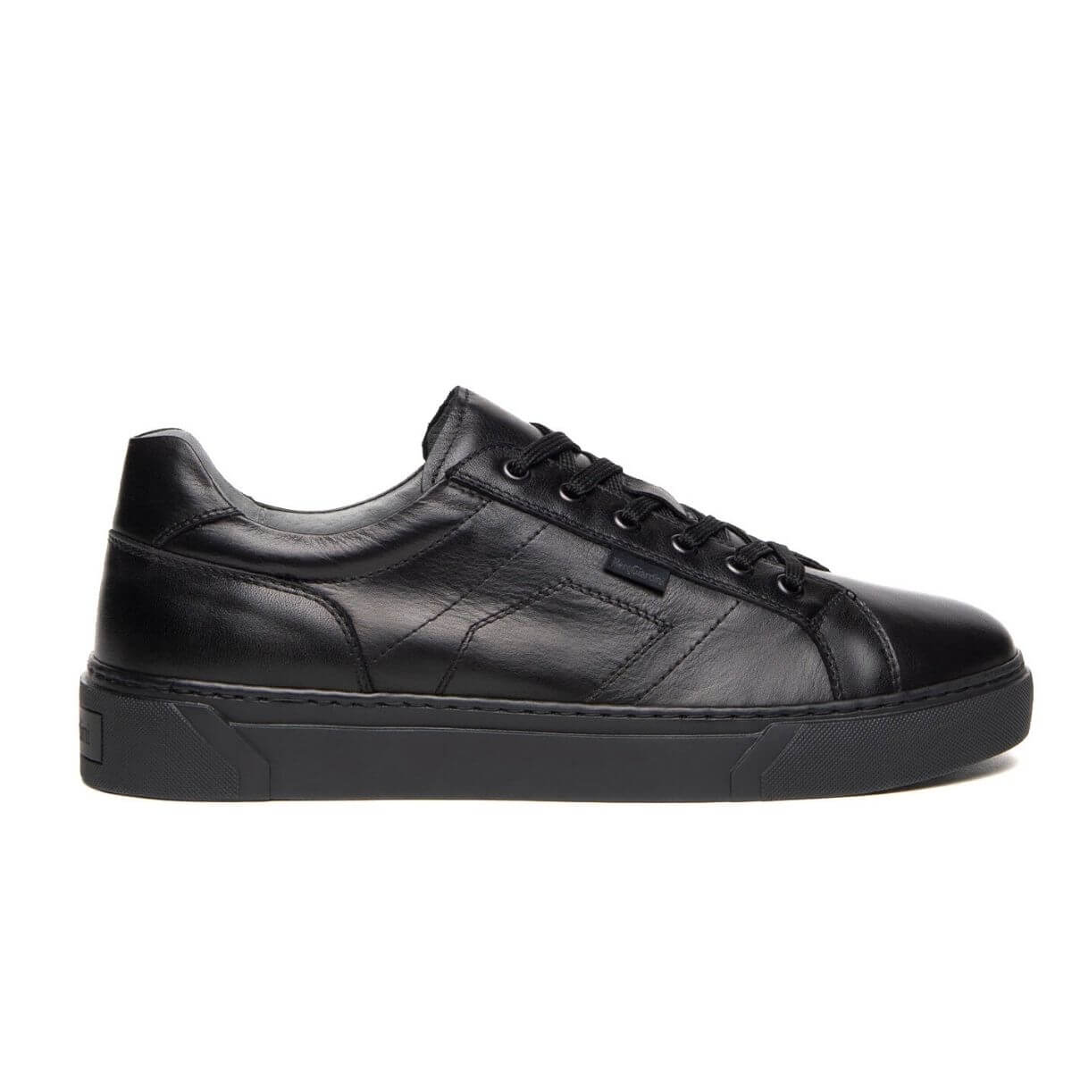 Sneakers da uomo di NERO GIARDINI, realizzata in pelle nera con suola tono su tono. Interno e sottopiede, estraibile e con tecnologia DryGo!® che assorbe l’umidità e garantisce confort e benessere, in pelle. Chiusura con laccio.