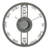 Elegante orologio in vetro specchiato dalla forma circolare, arricchito da dettagli unici come numeri in legno laccato con effetto metallizzato, applicazione centrale con stampa di alta qualità con effetto marmo, lancette lucide e meccanismo di movimento made in Italy.
