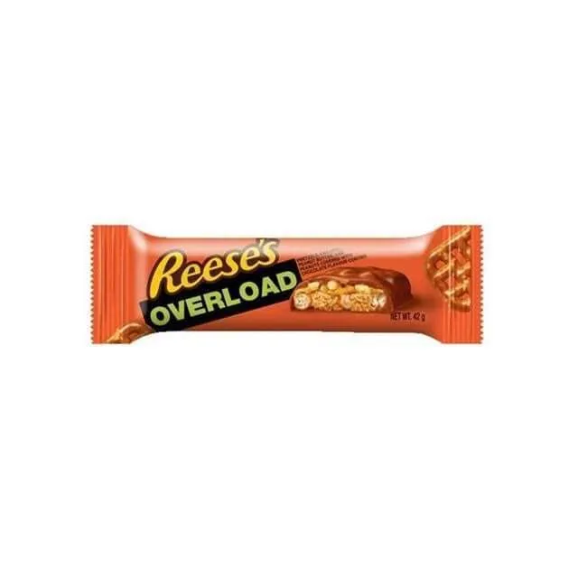 Reese’s Overload è una squisita barretta di cioccolato ripiena di croccanti pretzel, caramello, cremoso burro di arachidi e pezzetti di arachidi ricoperti di uno strato di delizioso cioccolato al latte. Reese’s Overload è un perfetto mix di dolce e salato, con l’inimitabile burro di arachidi Reese’s! E tu cosa aspetti a provarlo?? Scopri Reese’s Overload!
