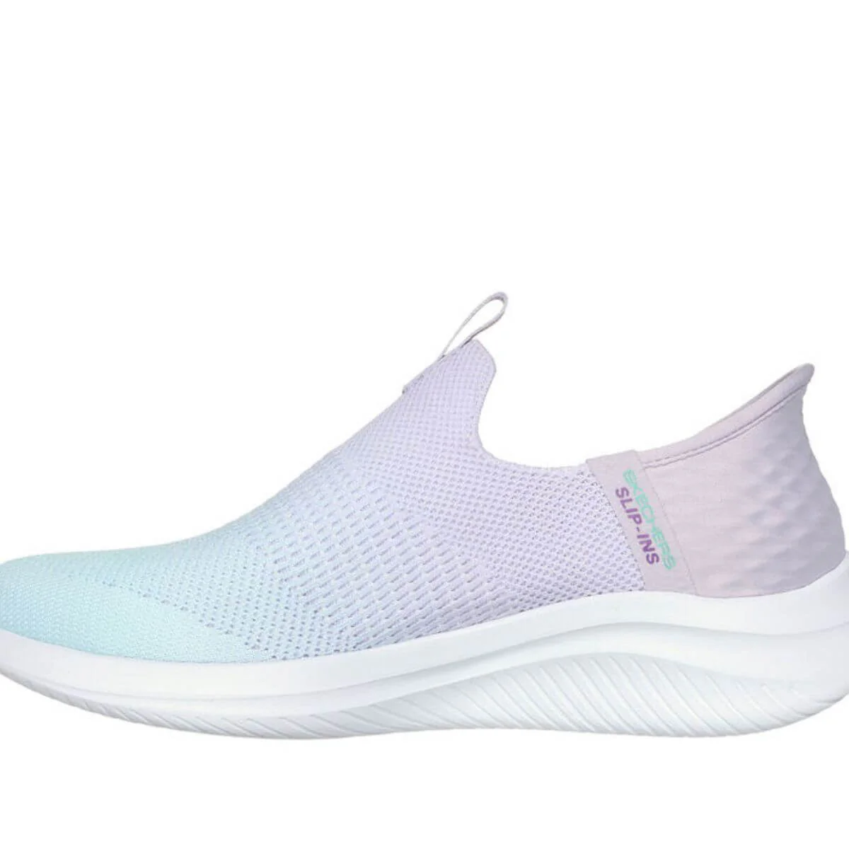 Slipon da donna di SKECHERS. Tomaia in tessuto vegano multicolore. Interno foderato in tessuto con sottopiede in morbido tessuto e calzata Slip-ins. Chiusura con lacci elastici. Suola in gomma. Calzatura molto leggera.