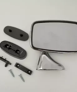 Specchio retrovisore sinistro cromato, omologato E, fornito con distanziale in plastica