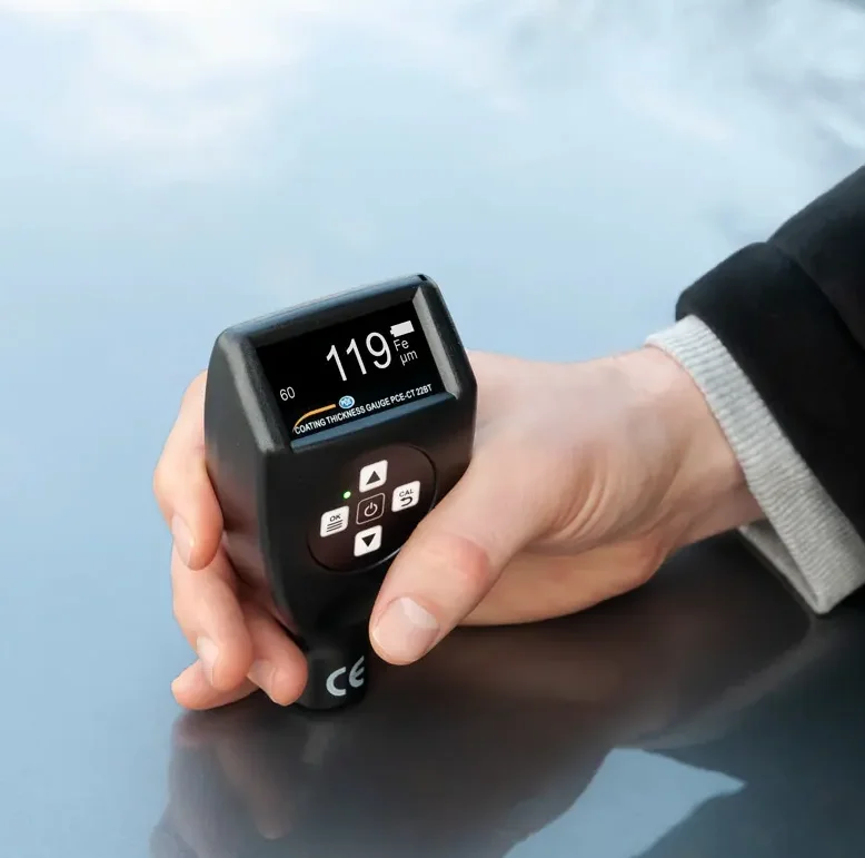 Lo Spessimetro digitale per Carrozzeria CT22BT + Bluetooth misura in modo affidabile lo spessore di un rivestimento su superfici metalliche. Lo spessimetro ha un range di misura di 1500 µm. Lo spessimetro può essere utilizzato nelle officine, nel controllo di ingresso del materiale o da parte dei periti. L’interfaccia Bluetooth dello spessimetro consente di trasferire i dati a un dispositivo mobile IOS o Android ed esportare i file in formato csv, pdf o txt. È possibile inoltre visualizzare i dati in tempo reale attraverso l’App gratuita.