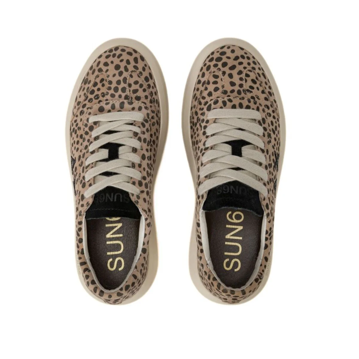 Esalta il tuo stile con le sneaker SUN68. Tomaia in pelle effettto leopardato con logo glitterato. L’interno e il sottopiede rimovibile, foderati in pelle e non, garantiscono comfort e traspirabilità. Lacci di ricambi inclusi. Suola in gomma.