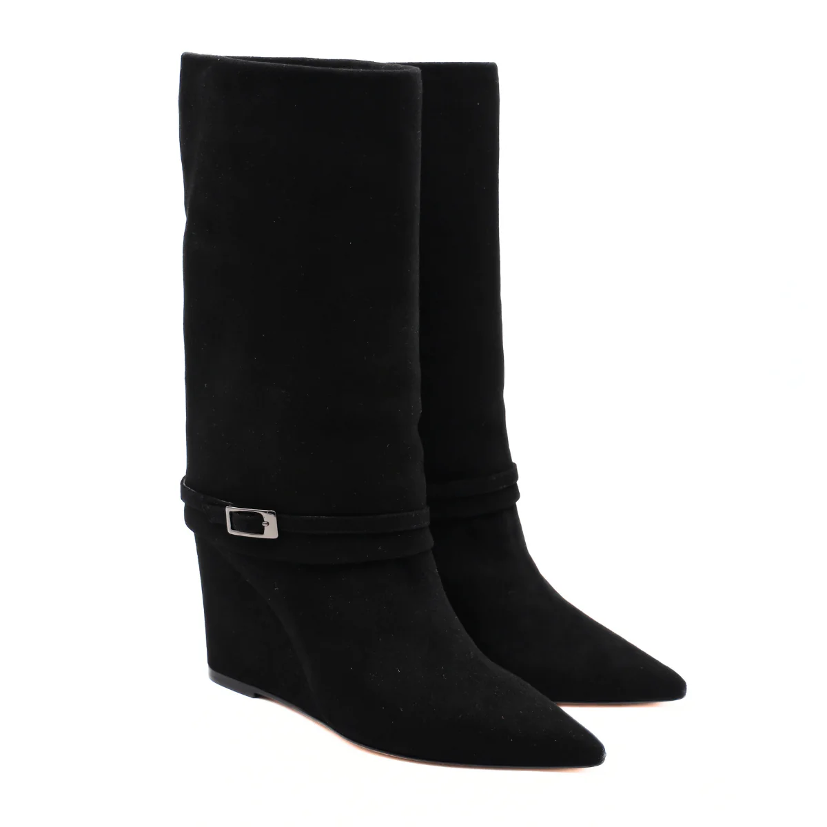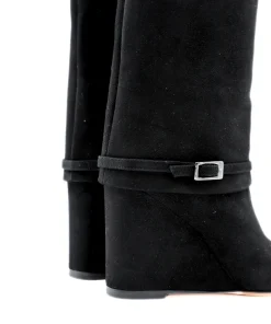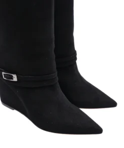Stivale di THE SELLER realizzato in pelle scamosciata. La tomaia presenta un morbido risvolto tono su tono e un cinturino regolabile. Interno e sottopiede completamente rivestiti in pelle e suola in cuoio con parte in gomma.