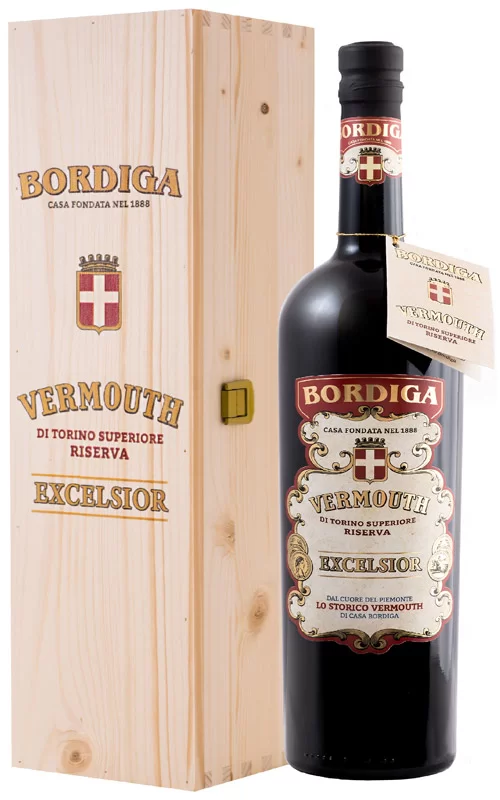 Bordiga Excelsior, una riserva speciale creata per celebrare i 130 anni di Bordiga, fedelmente alla ricetta storica mai più prodotta a causa dell’elevato costo di produzione, dovuto alla presenza di oltre il 20% di Barolo di Conterno. Si presenta colore rosso mattone intenso, al palato è corposo ed aromatico, piacevolmente tannico per la presenza del vino nella ricetta.